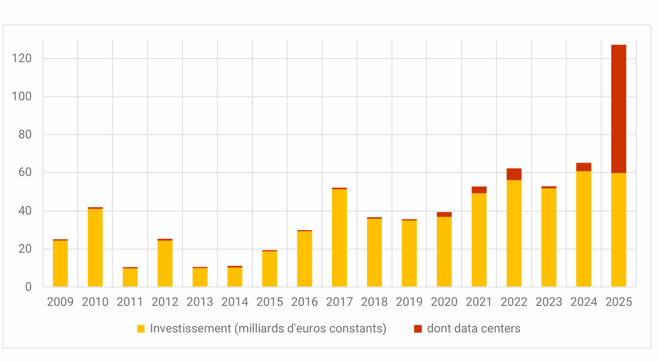 En 2025, la France enregistre un record historique d’investissements, porté notamment par les data centers. Pourtant, les créations d’emplois restent modestes et concentrées sur quelques filières et territoires.